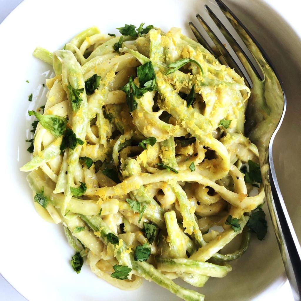 معكرونة بالجبن مع نودلز الكوسا وجبة صحية ولذيذة تجمع بين فوائد نودلز الكوسا ونكهة الجبن النباتي الغنية والشهية. تُحضّر هذه الوجبة من الكوسا الطازجة، وهي خالية من الغلوتين، ومناسبة للنباتيين، ومناسبة لحمية الكيتو، مما يجعلها خيارًا مثاليًا للأشخاص المهتمين بصحتهم.