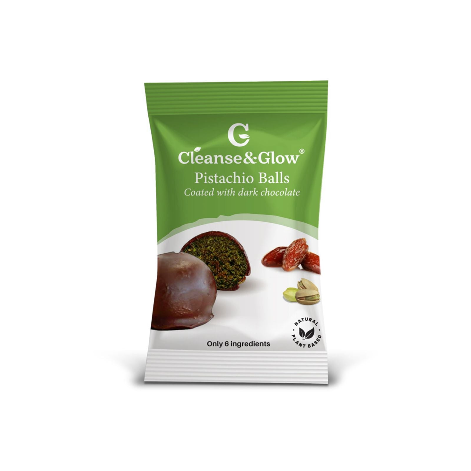 Pistachios, dates, coconut oil, raw cacao. (Gluten Free/ Vegan)