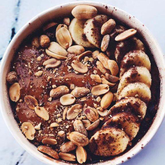 Peanut-Butter-Oat-Meal is a delicious and filling breakfast option that combines the rich flavors of peanut butter and cocoa with the nutritional benefits of hot oats. This gluten-free and vegan meal is made with hot oats, maple syrup, dates, cocoa, almond milk, peanut butter, peanut, banana, and vanilla.
